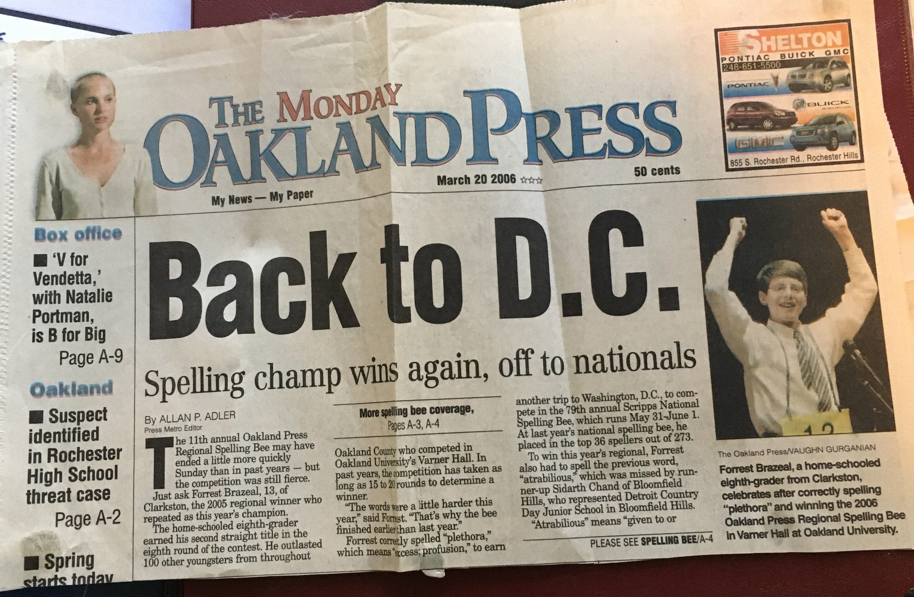 An academic freak who wins spelling bees.1 I was a two-time National Spelling Bee finalist in 2005-06. ESPN’s John Marvel once said he liked my odds for two reasons: 1) I was homeschooled and 2) I had a name he couldn’t pronounce.